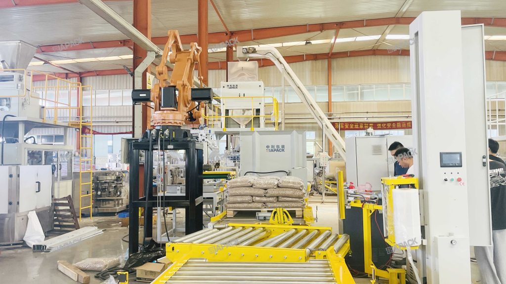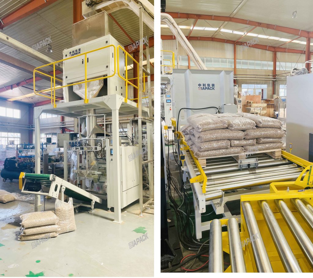 Tukaj ste: Domov » novice » 15KG Leseni peleti tehtajo polnjenje vreč Linija za paletiranje je pripravljena za dostavo