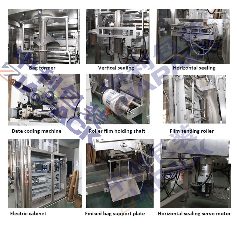 - Humana naprava za vrečko za shranjevanje, varno in priročno upravljanje, uporaba preklopnega stikala ali nožnega stikala, je mogoče doseči z drugim delom povezovalne opreme za pakiranje.