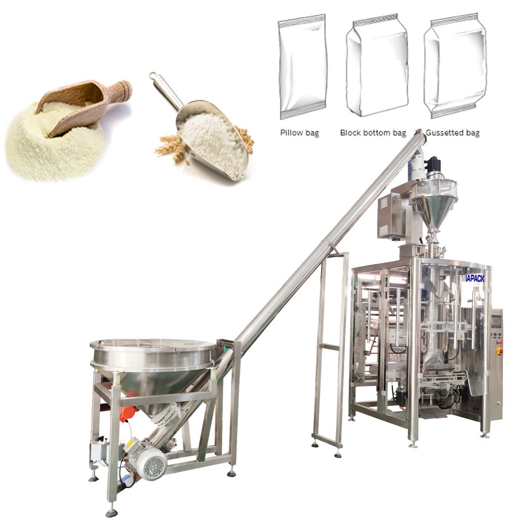 Ta strojna enota vključuje en komplet ZL1100 navpičnega polnilnega stroja za oblikovanje vrečk in en komplet ZL2000 merilnega stroja s polžem. Celotna enota stroja lahko doseže samodejno izdelavo vrečk, tehtanje izdelkov, tesnjenje polnjenja izdelkov in kodiranje datumov. Široka uporaba za pakiranje pšenične moke, kave prašek in mleko v prahu ter drugi izdelki v prahu.