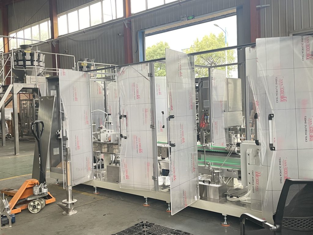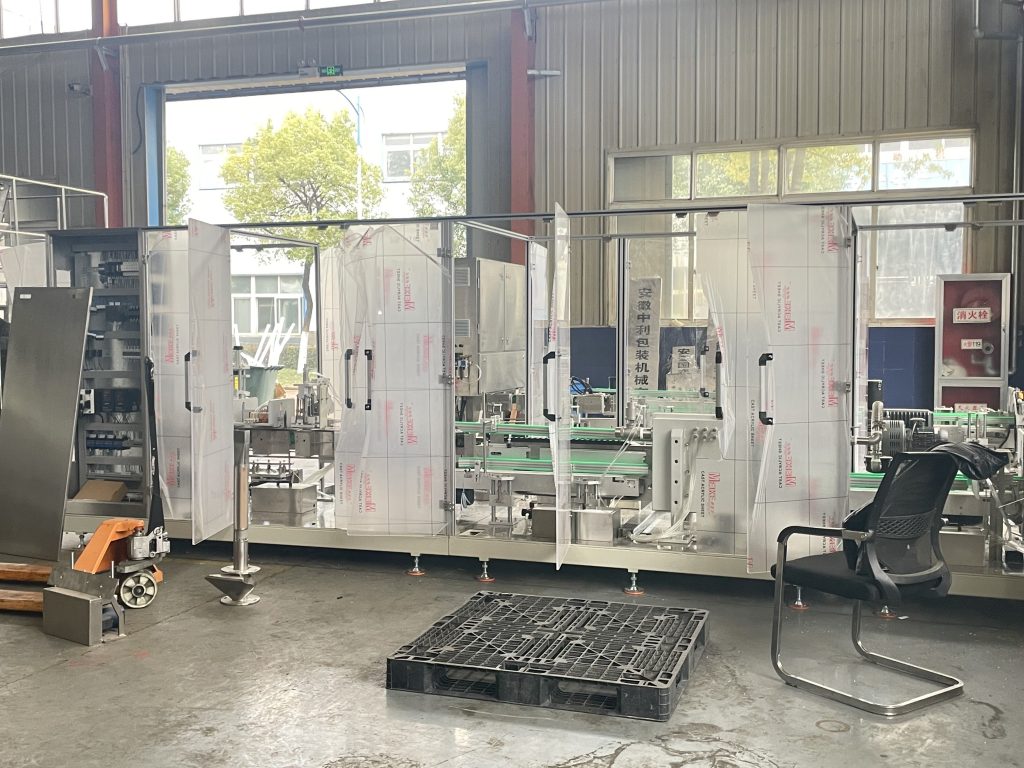 Končali smo dva kompleta avtomatskega pakirnega stroja za vakuumsko opečno vrečko. Eden je za 1000 gramov zrn in fižola. In en komplet je za 250 gramov kave v prahu.