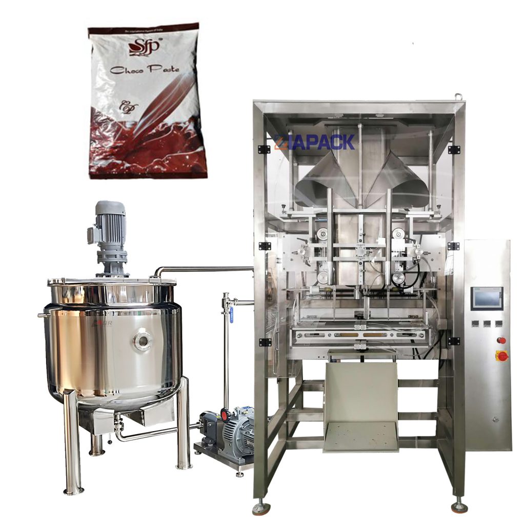 Ta strojna enota je posebna zasnova za pakiranje majhnih izdelkov z omako, kot je ketch up, čili omaka, ribja moka in tako naprej. Stroj lahko samodejno izdela vrečko, stehta izdelek, polni izdelek v vrečko in nato odda tekoči trak. Celoten stroj krmili jih PLC in lahko deluje na zaslonu na dotik. Enostavno prilagajanje in vzdrževanje.