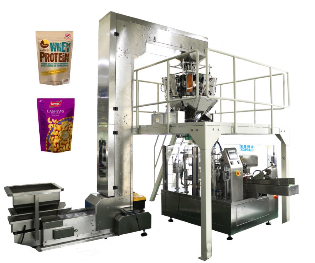 Rotacijski pakirni stroj z različnimi odmerki (kot so multihead tehtanje, polnilo za polž, tekoče polnilo itd.) so primerni za avtomatsko pakiranje za granulat, prašek, tekočino, pasto itd.