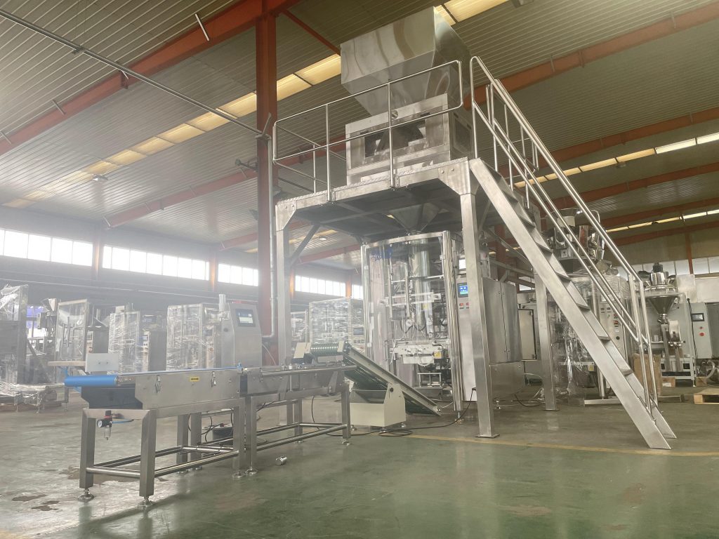 Ta stroj vključuje eno nastavljeno linearno tehtnico in eno nastavljeno navpično polnilno napravo za oblikovanje vrečk ter en nastavljen detektor teže.